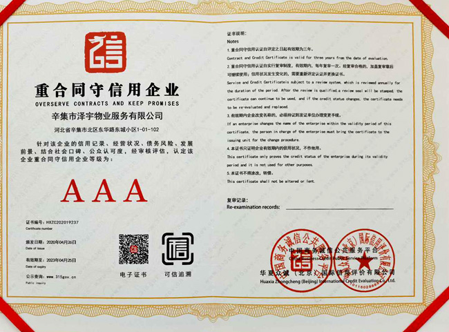 企業信用評價AAA級信用企業 |